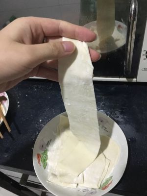 将面擀成宽面片,备用。(注意在面片两边抹上干面粉防止粘连在一起)