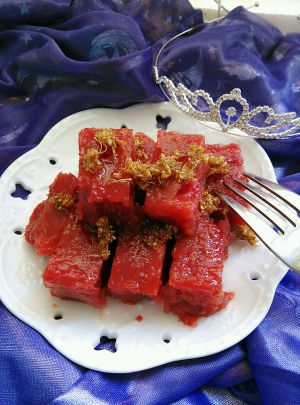 冷藏2小时以上。取出切块,再浇上糖桂花。很开胃哦。