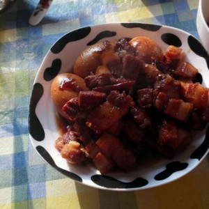 成品。五花肉本来就有油,我不喜欢油腻的,所以没有用一滴油,最后盘子里还是有油滴,不过很香。