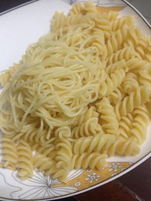意大利面煮8成熟待用(因为意面卷比较难熟,所有最好泡五分钟)