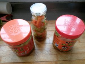 罐装泡菜,哈哈,旺仔小馒头瓶子,儿子吃完重新利用~