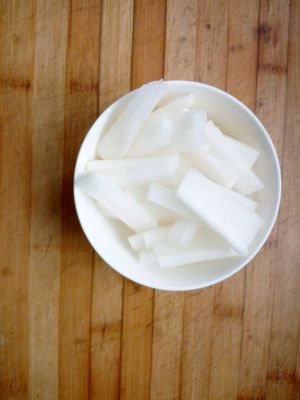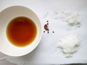 盐一勺,白糖两勺,花椒少许,醋五勺备用。
