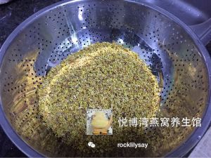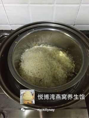 在揉好的桂花面上放入2倍左右的冰糖,放入烧开水的锅中隔水蒸至冰糖全部融化