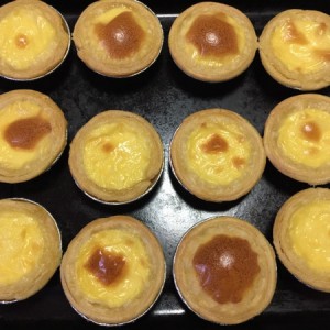 将低粉倒入混合液中搅匀,最后用筛子过滤一遍,将挞水装入蛋皮中,摆盘放入烤箱预热,180度,19分钟即可!