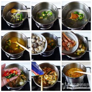 汤快开时,加入一匙冬阴功酱,搅拌均匀。