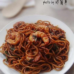 面条翻炒好的加入切碎的香椿快炒,出锅前加入黑胡椒粉提味即可