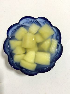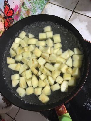 把冰糖放入水中熬成糖水,把苹果倒入熬开的糖水中煮10分钟