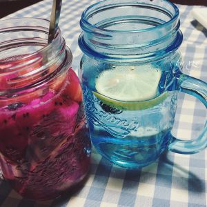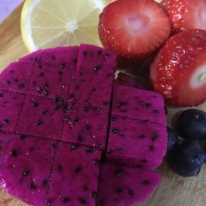 拿部分火龙果倒入打汁机,加入50ml雪碧搅拌