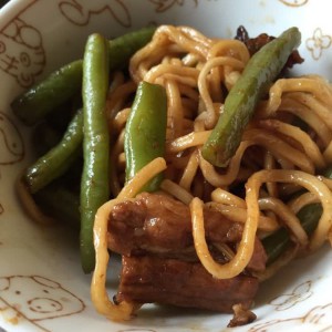 炒的差不多 加入酱油 炒匀后 放入扁豆继续翻炒