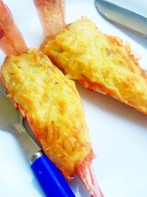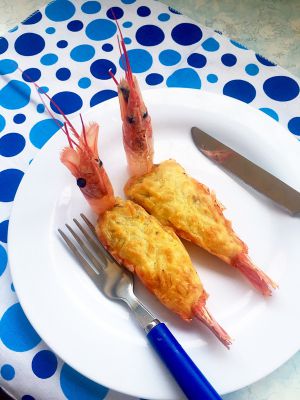 180度10-15分钟(酌量时间)虾头开水烫一下,摆好造型即可