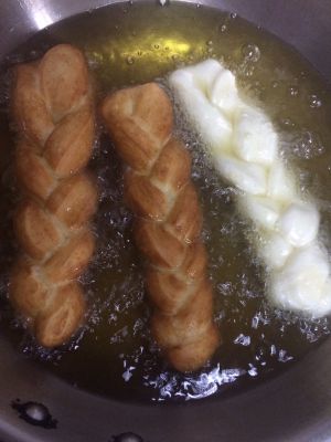 油八分热时放入锅中,一次放两三根就好,要留有空间,两面炸成金黄色捞出.