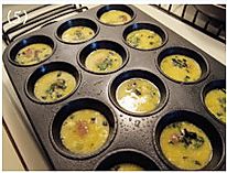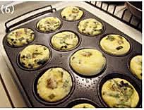 入预热375F/180度的烤箱,烘烤8-10分钟,至鸡蛋表面膨起。烤好的蛋饼,用筷子或者硅胶刮刀,将其侧面和模具分离,再滑出模具入盘即可。