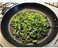 韭葱切好,如果香肠出油够多,就不用加油了,中火炒香至软。