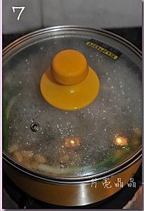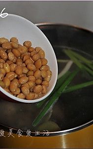 倒入泡涨的黄豆一起煮。煮开后倒入一汤匙醋