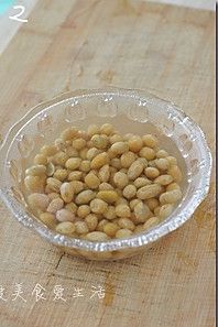 黄豆洗净,用水泡涨