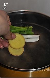 放些料酒,放入葱段和姜片