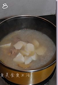 时间到开盖放入洗净去皮切成块的山药,再煮半个小时左右,起锅前10分钟放盐调味