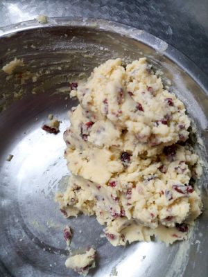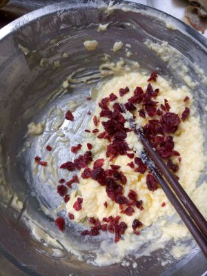 加入面粉,然后把剩下得蔓越莓一块放进去,搅拌起来