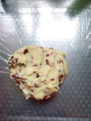 蔓越莓很干就提前用温水泡一下,软得就稍微切一下