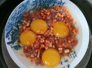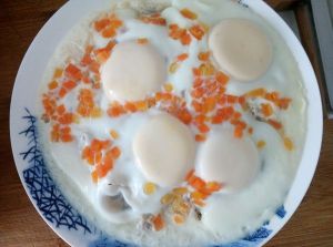 撒上胡萝卜丁,上蒸锅蒸20分钟,如果喜欢烫心的鸡蛋可以降低至15分钟。