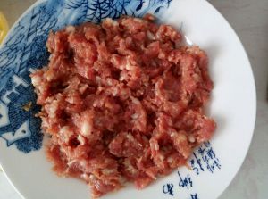 将肉馅中加入盐,油,十三香,鸡精,酱油,调匀