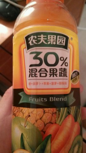 百香果切开,籽和肉放在杯子里,因为太酸了,加上点农夫果园混合果汁(胡萝卜,橙苹果,菠萝,猕猴桃款),如果觉得太甜或者太浓,可以加点水,其实放一会儿百香果的味道散开就不那么甜了。