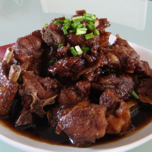 待肉排煮透后,开大火收汁,不停的搅拌。待汁水收到差不多没有了,放入适量的醋,翻一下,即可。