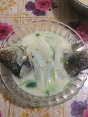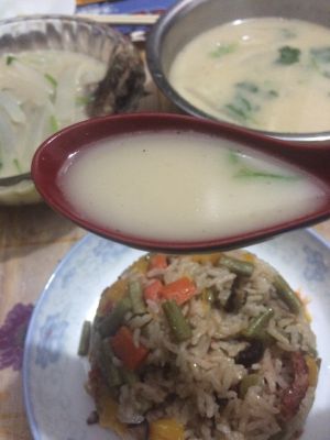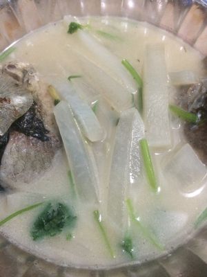 开大火煮沸变奶白色了加入少许鸡精调味即可……