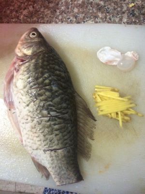 鲫鱼洗净切尾 我不喜欢尾巴哈 姜切丝