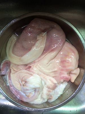 猪肚一只洗干净。表示洗猪肚是个艰难的活儿。但是为了吃。拼了!!