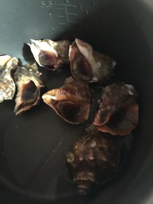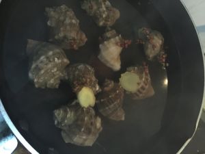再将洗净的海螺一个个放进去,在放人少量花椒和姜片