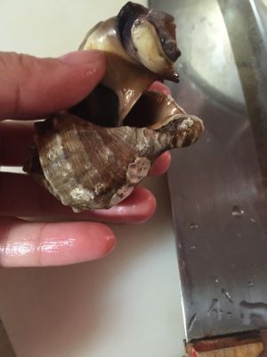 用筷子将海螺肉挑出,尾端的泥沙去掉