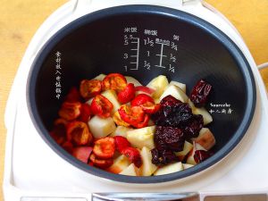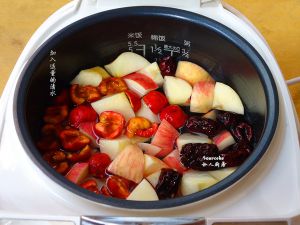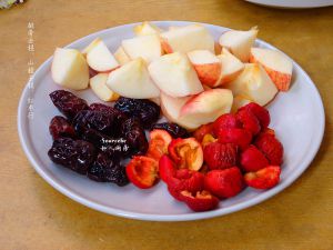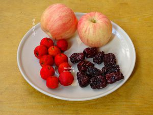 苹果洗干净,去核,切块,山楂洗干净去核,红枣买的时候就是去核的,洗干净即可。PS:苹果不需要去皮,甘蔗切小段。