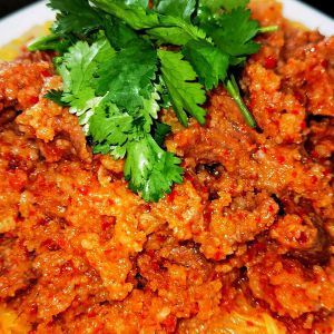 羊肉切片儿,洗干净血水,沥干水分。姜末,料酒两勺,白糖半勺,盐一丢丢,辣椒粉(依个人口味2-5勺),纯净水(嫩肉的目的),味极鲜两勺,现焙的花椒粉半勺,鸡精一勺,蚝油两勺,顺时针搅匀(无水状态),淋入花生油三勺,最后撒入两大把蒸肉米粉拌匀