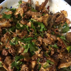依次加入葱姜蒜末,花椒油,芝麻油,生抽,醋,白糖,胡辣椒面或者油辣椒,然后撒上一把香菜,拌匀就可以啦…………香辣可口。