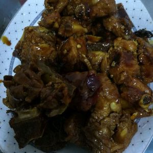 排骨浸泡半小时洗净,焯水撇去浮沫,捞出沥干,锅内放入少许油加入冰糖熬到变色加入排骨翻炒,再加入葱姜蒜桂皮香叶炒出香味。