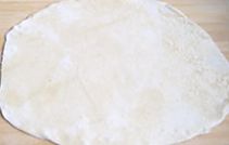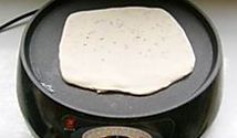 最后擀成圆饼,平底锅烧热刷油,放上饼,用慢细火轻烙,可以盖锅盖