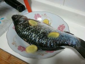 买鱼时让师傅清洗干净鱼鳞内脏,回家后里里外外洗干净,特别注意把内腹部的内黑膜刮干净,加盐适量见鱼小腌一会,帮助之后入味,姜去腥