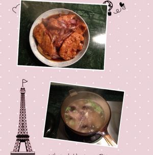 起油锅,炸猪排,成型即捞出,倒出油锅的油,原锅煸炒洋葱出香味盛出。