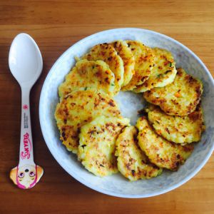 手心里沾上水,可以放粘,也可以带手套,把拌好的土豆泥揉成乒乓球大小的球,然后用手轻轻压扁。锅里刷薄油,小火把饼放进去煎至一面金黄再翻另一面。煎至两面金黄,就可以出锅啦!
