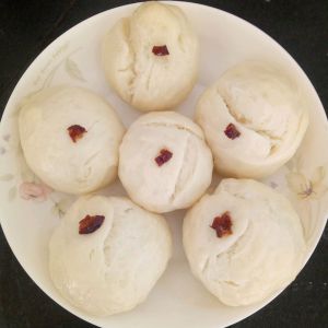 醒好切块揉圆上锅蒸15分钟,放了红枣点缀,可爱吧,出锅咯