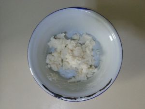 .250克糯米粉里加入适量开水用筷子搅拌均匀。