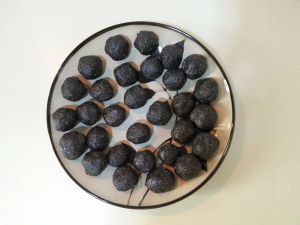然后将融合后的猪油糖加入到黑芝麻粉里抓拌均匀后团成小团子放入冰箱里冷藏30分钟。