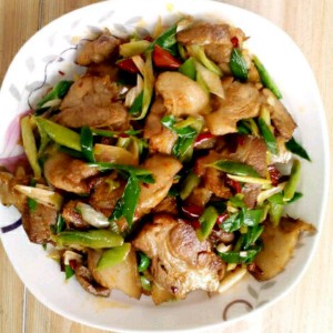 放入蒜苗,放盐,五香粉,翻炒根据个人口味炒到不同火候。放入鸡精调味,就可以出锅啦~