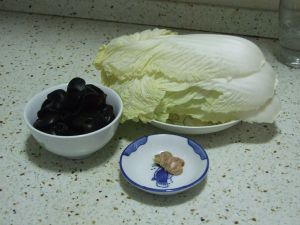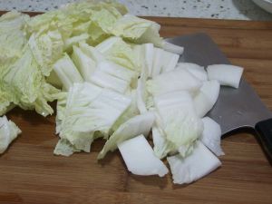 白菜纵向对剖开,再横切成麻将大小块(40X25mm)。