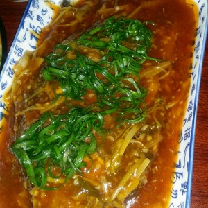 最后一步,把酱汁淋在鱼上面,再放上葱丝。哈哈,完成!是不是好简单