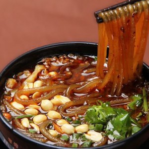 红薯粉要选择这种粗圆的不光滑的,提前在水里泡软,这样煮的时候比较省火,很快就能吃到,我每次都是心血来潮的想做,就没泡,要煮好久的。
