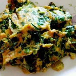 锅里放油,比炒菜稍微多一些,这道菜吃油,油熟了之后换小火(一定换小火),倒入搅拌好的韭菜鸡蛋,因为是小火不会糊,待半分钟翻个个儿,将成型的底面翻到上面,等到都成型了,就可以出锅开吃了。
