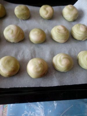 包好,放入烤盘,每个留有空间。烤箱事先预热。