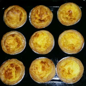 过滤一次混合液体!将液体倒入蛋挞皮,八分满即可!